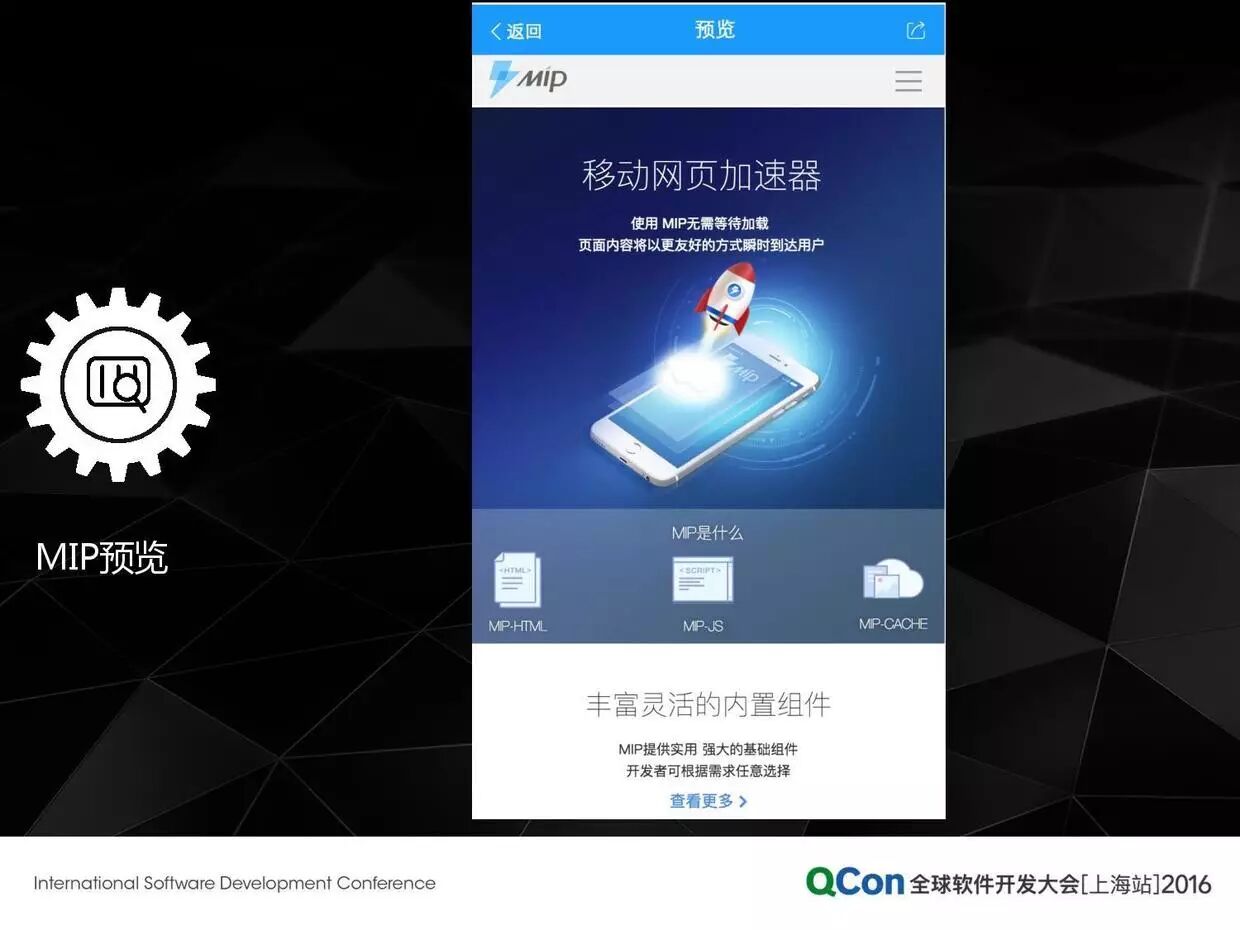 演讲概要随着移动互联网技术发展与 H5 生态的不断演化,在前端领域涌现出了一些通用的、开源的移动 H5 页面加速框架。其中以 Google 提出的 AMP(Accelerated Mobile Pages)开源框架与百度提出的 MIP(Mobile Instant Pages)开源框架为代表。本主题主要从技术的层面讨论: 移动 H5 页面速度体验方面遇到的挑战和问题,以及解决方法的探索过程; 从架构设计层面,解析通用移动页面加速框架的设计思路和实现原理; 从技术实现角度,剖析移动页面加速中的重难点问题与解决方法实践; 从实际应用上,提供提升移动页面加速切实可行的操作方法。