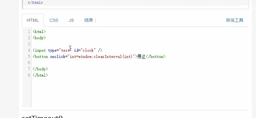 菜鸟教程中是这么说的——js 定时器有以下两个方法: