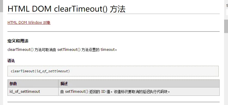 clearTimeout()取消由setTimeout() 方法设置的 timeout。