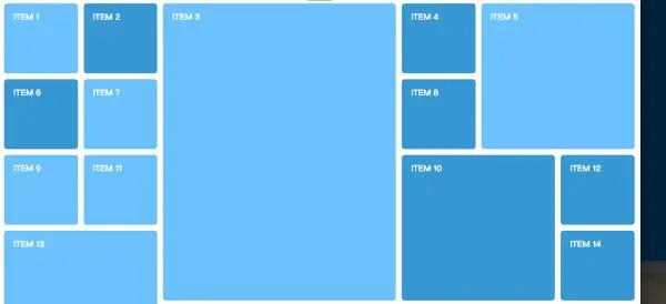 可以看到,除去样式代码部分,我们仅用不到 10 行的属性就完成了一个混乱编排的照片墙布局,并且他是自适应容器宽度的。这在以前是完全无法想象的。