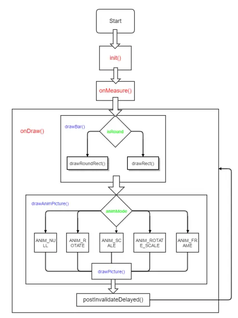 主要的逻辑是在onDraw()方法实现,里面大量利用到Canvas,Canvas的使用可以参考下我以前这篇笔记。