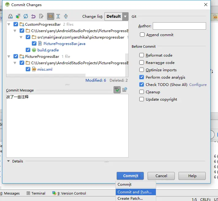 - 后面更新项目就是点击Commit按钮了,然后push了: