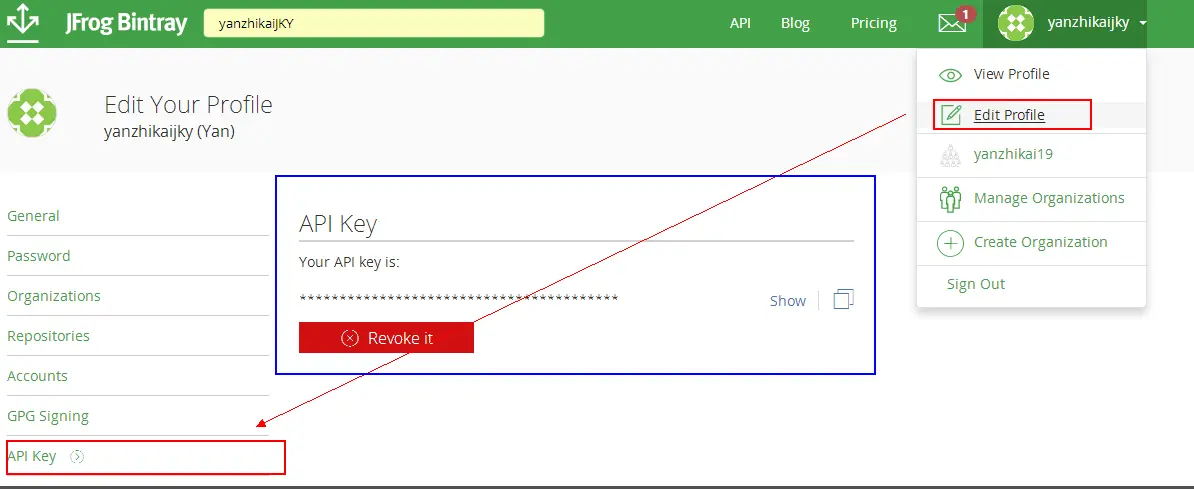 2. 注册完之后首先就是查看自己的API,复制下来备用,后面的上传都要用到: