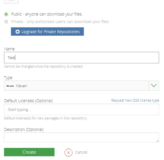 3. 建立一个仓库,用来装代码(填好Name,里面的Type选择Maven,其他的都不用管了,点Create就行):