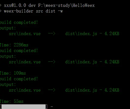 你修改/src/index.vue文件,然后保存,就可以在命令行在不断变化着,监视作用起效果了。