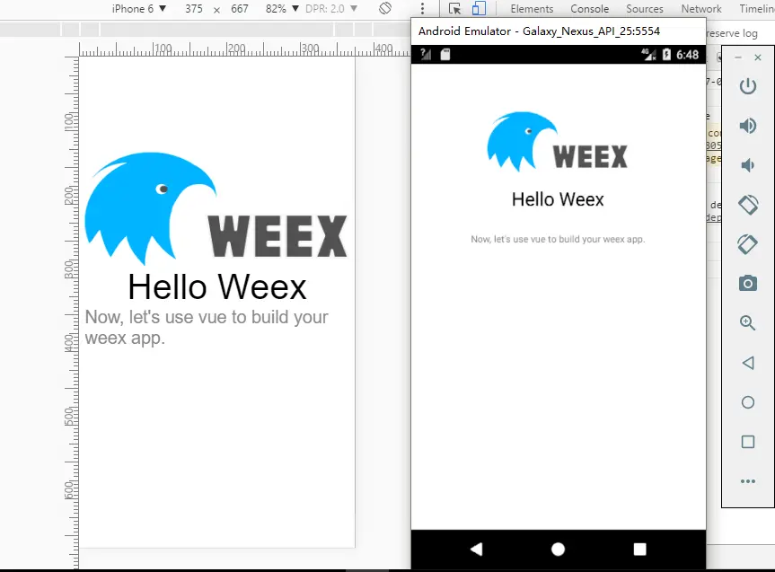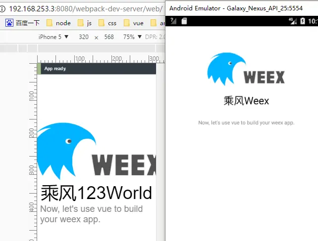 他会自动检测你电脑是否有连接,有的话会在你手机上打开weex的页面,并且浏览器会自动打开(其实就是打开了serve),显示的也是weex页面