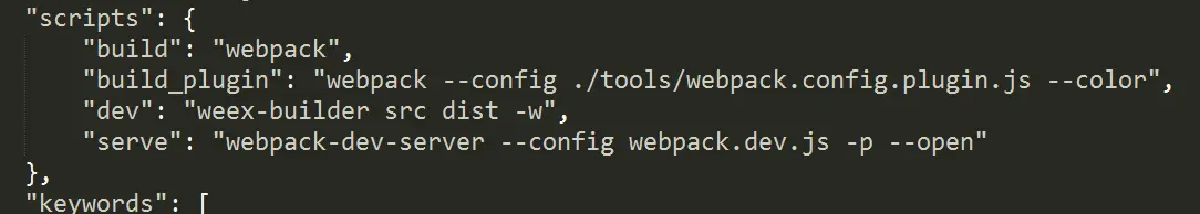 现在一看到构建工具的东西,我都会潜意识的打开readme.md文件和package.json文件,我们来看看package.json下面的script里的脚本