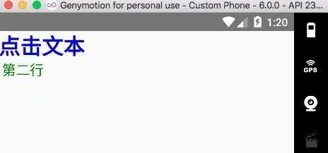 ...再运行程序,就会发现"点击文本"变为蓝色了。在实际开发中,style属性会变得越来越复杂,因此我们可以使用StyleSheet.create来集中定义组件的样式。