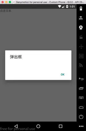 };好了我们运行程序,当我们点击Text组件时会弹出Alert,如下图所示。