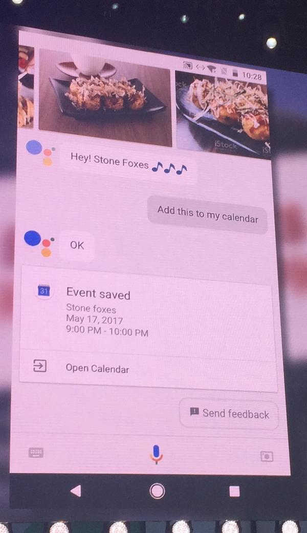 对话在继续 Add this to my calender 这里的代词又变成了图片中的演出,这样的理解能力在目前的学术界都是尖端的,Google能把它集成在应用,非常令人激动啊。(当然咯,这是demo,真的效果会不会打折,就要拭目以待了,哈哈)