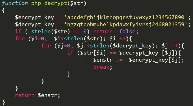 简单解密函数(与php_encrypt函数对应)