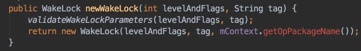 而在其中,还会调用 validateWakeLockParameters() 方法,它主要是对参数进行一些校验。