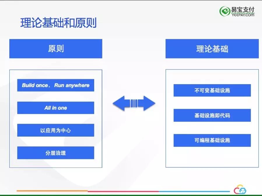 在我们决定使用Kubernetes的作为容器编排引擎后,关于选型的争论持续了很长的一段时间,当时国内Kubernetes的使用者还比较少,很难找到成功的案例。我们需要深入的研究Docker, Kubernetes相关的容器技术,确保我们的决策是正确的,这对我们构建容器云至关重要。经过很多的调研和讨论,我们发现容器云的是有一套完成的理论基础支撑的,这些理论又引申出我们构建容器云的原则: