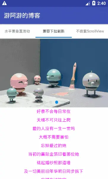 小细节:requestDisallowInterceptTouchEvent()方法在SwipeRefreshLayout中可能会不生效,此方法在SwipeRefreshLayout中被重写,在SDK22以下版本的V4包中,此方法什么都不执行,google的版本问题甚是头疼,要解决这问题就是下拉刷新嵌套的控件去实现NestedScroll,设置isNestedScrollingEnabled值为true,google也有写好的NestedScrollView