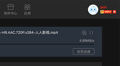 某下载工具,开始一个下载,虽然已经是付费会员账号登录了,但“会员加速”默认还是不启动的,需要用户自己点一下。