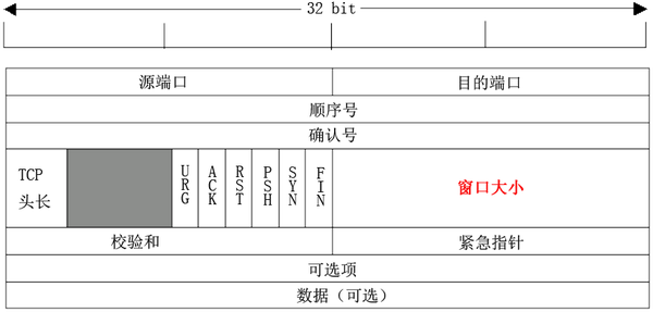 大小为4117 * 2 ^ 5 = 131kb,为什么接收窗口是这个数呢?因为如下TCP的报文(头):<img data-rawwidth="862" data-rawheight="412" src="https://pic2.zhimg.com/v2-6f3a37dd0039600817e60c3018d68269_b.png" class="origin_image zh-lightbox-thumb" width="862" data-original="https://pic2.zhimg.com/v2-6f3a37dd0039600817e60c3018d68269_r.png">