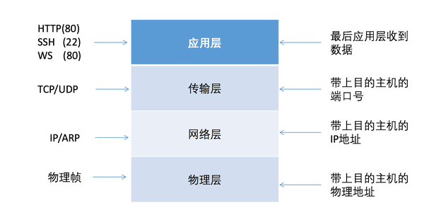 如下图所示,我们从发送数据的角度看四层网络协议:<img data-rawwidth="1510" data-rawheight="782" src="https://pic3.zhimg.com/v2-2fb73fea2f7696c374e8752f2f3589fa_b.png" class="origin_image zh-lightbox-thumb" width="1510" data-original="https://pic3.zhimg.com/v2-2fb73fea2f7696c374e8752f2f3589fa_r.png">