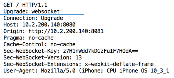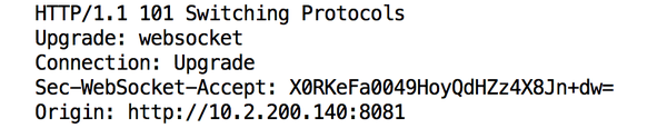 14:23:36.929714 IP 10.2.200.140.8080 > 10.2.200.11.61205: Flags [P.], seq 1:164, ack 435, win 4104, options [nop,nop,TS val 685816195 ecr 848067548], length 163: HTTP: HTTP/1.1 101 Switching Protocols
