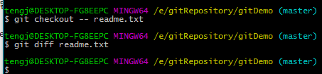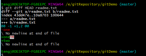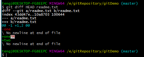 执行git diff HEAD readme.txt查看效果