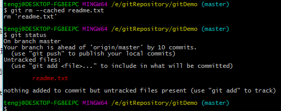 1.执行git rm readme.txt命令,发现文件被删除了。