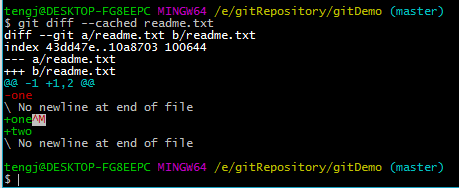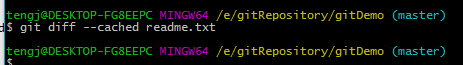 执行git diff --cached readme.txt查看效果