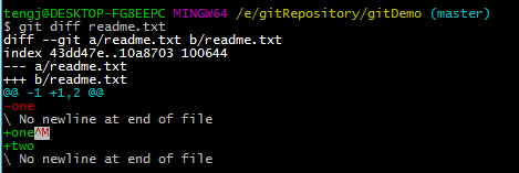 执行git diff readme.txt查看效果