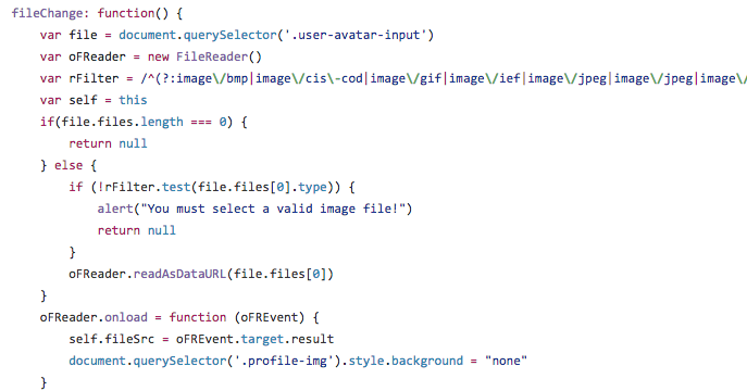 因浏览器的安全限制,在input中提交的文件是不能获得文件的真实地址的这就导致无法直接通过地址来得到所需要的预览图。故可以使用一个HTML5API,FileReader对象。developer.mozilla.org/zh-CN/docs/…