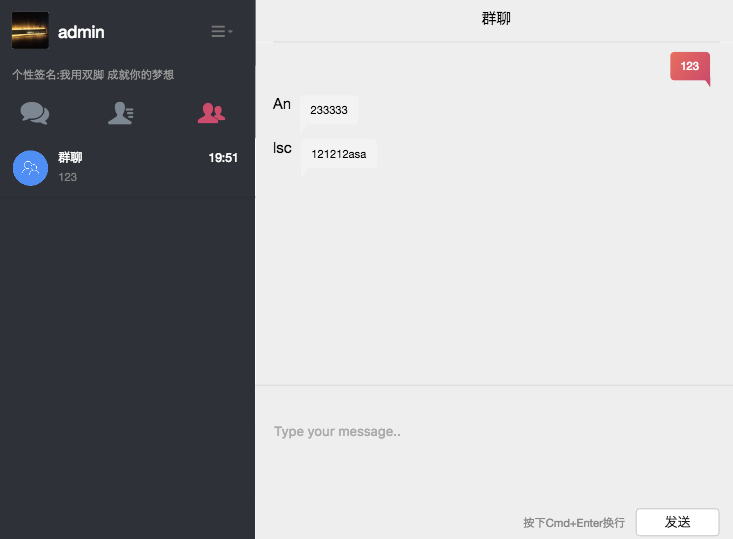 本次私聊和群聊的界面由同一个组件复用,在前端页面需要判断渲染私聊还是群聊消息。同时后端也需要判断是群聊还是私聊消息模式。