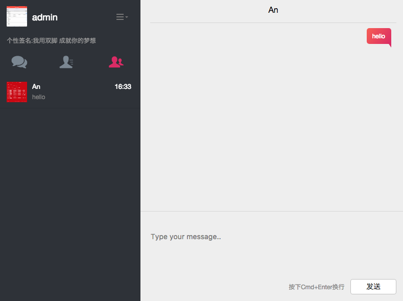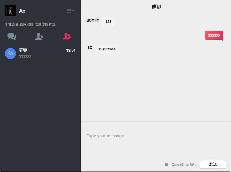 这是一个最最最基本的聊天demo实现,也是我第一次自己写一个小分享。ui方面借用了网页版wx的部分样式。同时代码中仍然存在一些“不可预知”的bug,比如聊天消息显示有时候会出问题但是并没有好的方法来排查,主要是第一次使用vue来做前端框架,里面的html和js分离我还是不能很习惯,在debug方面做得还不够好,毕竟用了很久的react..嗯这都不是理由,所以欢迎交流心得,bug可提issues,虽然我可能...