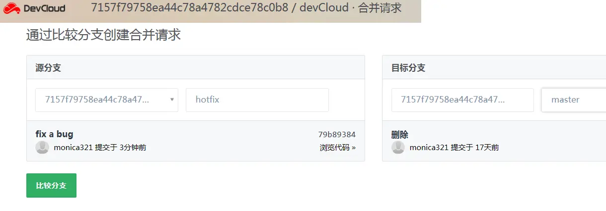 在开发云界面输入新分支名,并选择从哪个分支检出即可。