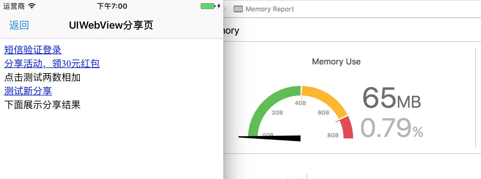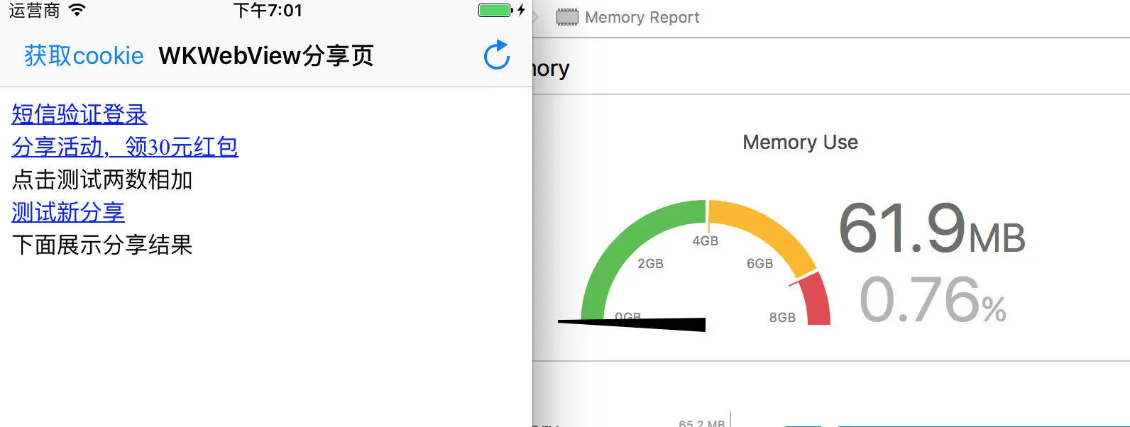 从页面UI元素上看,WKWebView还多个barButtonItem呢,这么简单个页,内存占用小了3M,复杂的页面可想而知。