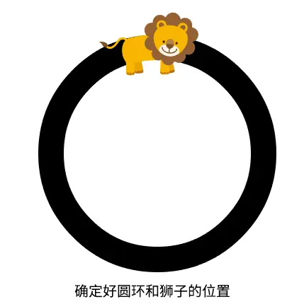 首先在AI里做一个圆形,描边的粗度就是可伸缩的小狮子的身体,调整小狮子的大小和位置。