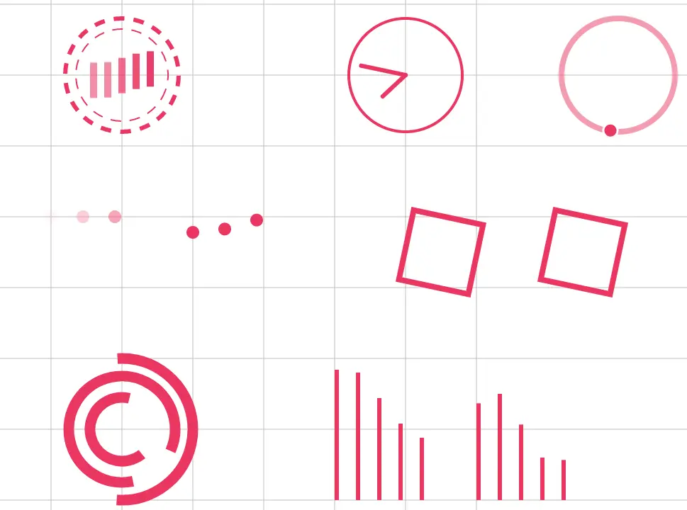 关于加载时的动图,最常见的菊花已经被用滥了,在最开始接触SVG的时候,为了练手,做过一堆,如下: