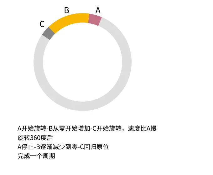 这些都是最基本的样式,即使眼花缭乱,但实现起来都简单无比,无非就是旋转+宽高变化+位移。当你有充裕的时间,可以考虑多花费一点精力来打造一枚独一无二的loading图标。融入一点品牌或产品的调性,在小细节处体现一下设计感。下面由浅入深,步步拆解,看一枚特别的loading动图的做法。(老规矩,会附上可以复用的代码,方便UI设计师拿去用)