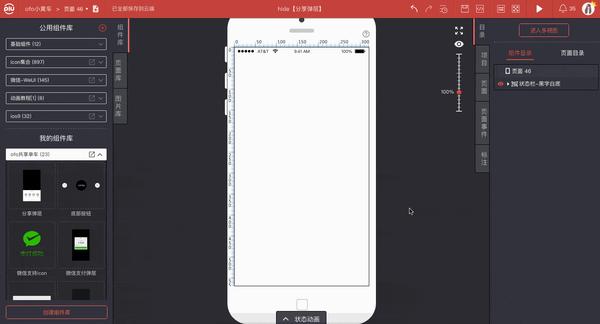 2.如上图所示,点击引用后,组件库即成为自己的引用资源(库内的资源也会实时更新),大家可在项目中使用,搭建自己的页面,比如快速搭建一个「分享红包」页面: