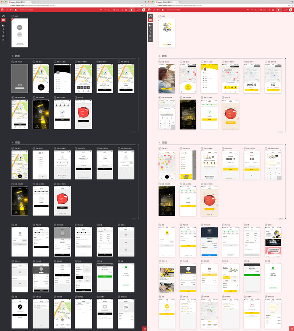 由于不怎么会骑车,我迟迟没有去体验,然而看见大家都在用,总觉得不管能不能骑,总得试一把。前两天我鼓起勇气解锁了一辆单车,从小区外的广场骑到了小区楼下,感觉还挺棒~🤗 当然,作为一个原型平台的开发者,我时刻木有忘记我的本职工作,体验回来速度做了一套ofo小黄车的APP原型模版分享给大家!恰逢ofo全新品牌升级,刚发布了2.0版本,所以这次给大家提供了两个版本来体验,我是不是很贴心,哈哈。