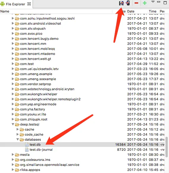 首先需要先将.db文件从手机中取出来,首先可以用adb pull命令进入到手机存储中,切换到指定的文件夹(上面提到过在/data/data/包名/databases),然后将上面建立的test.db文件pull出来。