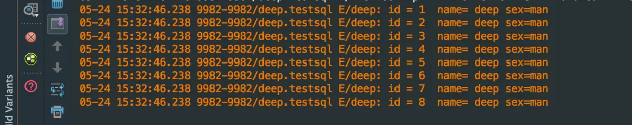 Log.e("deep","id = "+id+" name= "+name+" sex="+sex);