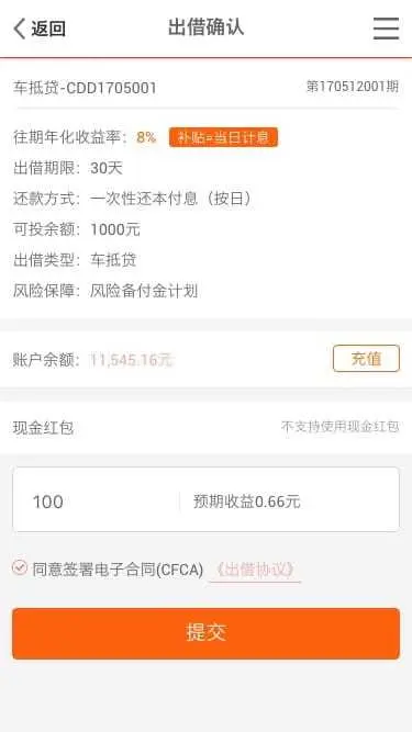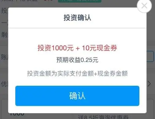 根据收益率、期限以及投资的金额,用户可以算出到期后的收益,但是根据我们的经验很少有用户会亲自去计算,同时增加了用户的体验成本,因为我们在一次改版的时候,就在前端增加了预期收益的计算,用户在投资金额中输入数字后,预期收益会实时根据公式计算并显示结果。这一点对于前端的工作量的增加几乎为0,但是为用户带来的掌控感则是指数增加的。同时,我们在用户投资的过程中,需要用户再次确认才能跳转支付的页面,同时也可以选择取消。虽然增加了一步的操作,但是避免了用户的误操作给用户带来的不可控感和不确定感。