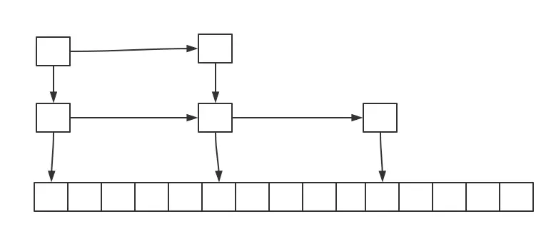 跳跃表是一种简单,高效的快速查找结构,实现起来成本最小,并且速度也很快,只需要一个图就可以完美的解释跳跃表的样子,而且对于编程人员来说,要实现一个跳跃表看着图就能实现,以下就是跳跃表的结构图,没有什么难度。