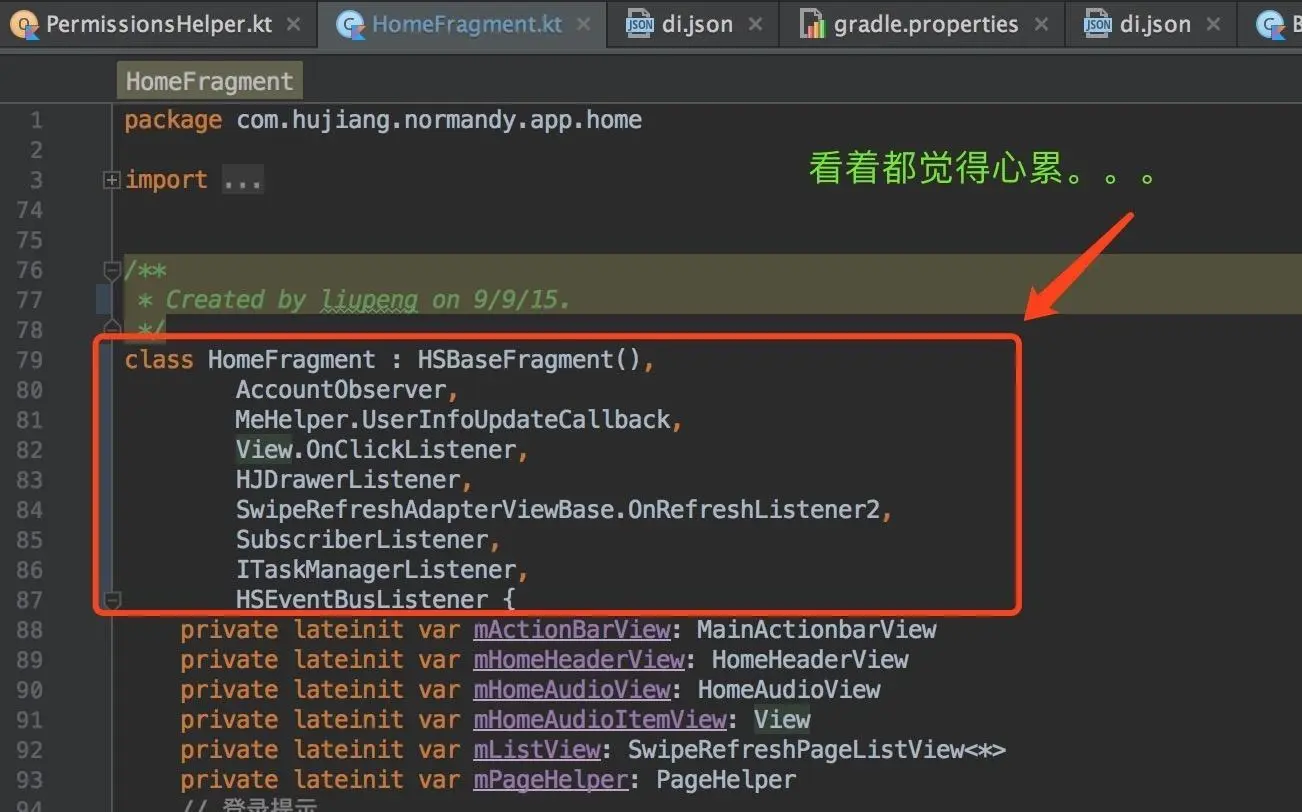 no, no, no 不能不爱,用起来实在是太爽了的,极大的提高了我的日常开发效率,但非要让我挑毛病的话,我只能说因为当初的 Swift 坑了我吧,我第一反应是跟 Swift extension 一样,终于可以摆脱之前要在一个类的开头,写一堆的接口,类似这样: