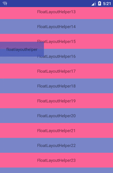 - FloatLayoutHelper: 浮动布局,可以固定显示在屏幕上,但用户可以拖拽其位置,代码如下: