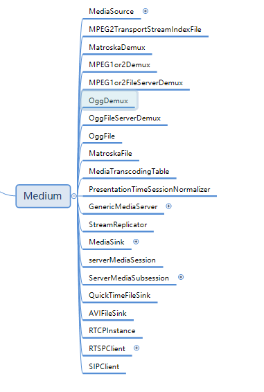 Medium::Medium(UsageEnvironment& env) : fEnviron(env), fNextTask(NULL) { MediaLookupTable::ourMedia(env)->generateNewName(fMediumName, mediumNameMaxLen); env.setResultMsg(fMediumName); MediaLookupTable::ourMedia(env)->addNew(this, fMediumName); }根父类,是Media Server中大多数类的父类。MediaLookupTable是一个类,主要用于方便根据名称进行Medium的查找,内部使用,不进行详细说明。