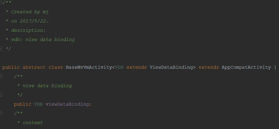 从图中可以看出 我们通过泛型 VDB 来指定ViewDatabinding的类型。