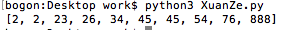 print(selectionSort([45,26,34,2,888,54,23,45,76,2]))结果展示: