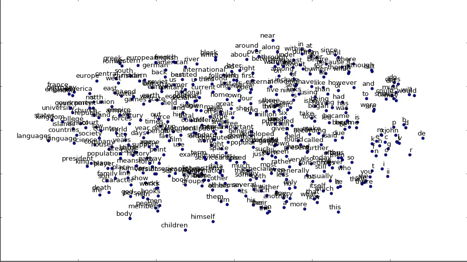 - 训练结果如下图,可以看到不同单词的接近程度