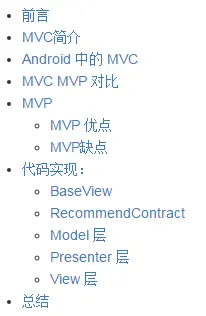RecycleView 综合使用案例(结合 ButterKnife、Retrofit、Picasso) 分享了在使使用 RecycleView 的时候如何结合 ButterKnife、Retrofit、Picasso 等框架进行使用。现在来聊聊 MVC 以及 MVP 框架吧。