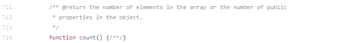 当然,这个有一个问题: 为什么SPL内置的一个实现Countable接口的类ArrayObject,实现count方法时,方法体里无实现代码,也没有返回值,但是依然能够计数。而我们如果没有return,则默认是null。使用Count函数计数时,就会返回零。为什么ArrayObject不用返回呢?