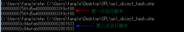 这里我们还要强调一点:虽然在一个脚本中对一个对象获取多次散列值,得到的结果是一样的。但是每次运行这个脚本获取这个对象的散列值是不同的。