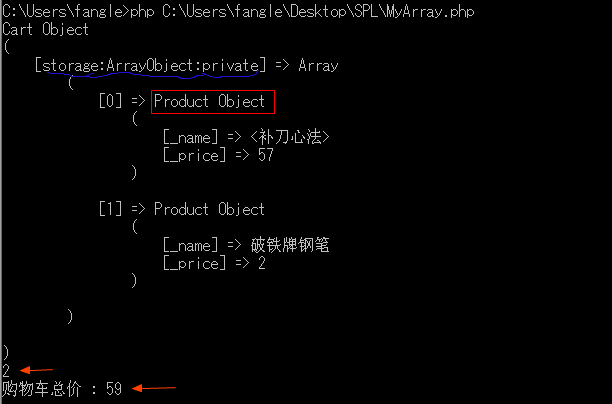 当然这里我们要强调一点,storage属性是ArrayObject的私有属性,Cart作为ArrayObject的子类,是无法直接访问和使用的。但是由于ArrayObject的特性,我们可以在Cart中使用$this来访问父类的storage属性,同理可以使用$this[0]来访问第一个元素。